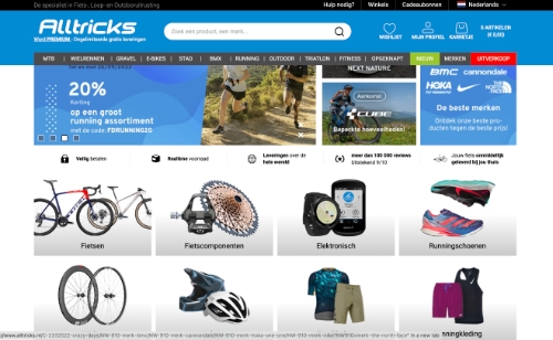 Alltricks.nl is een uitgebreide webwinkel op het gebied van fietsen, hardlopen en outdoor. Uiteraard richten we ons het meeste op die laatste categorie: outdoor-artikelen. Alltricks heeft zowel budget-merken als high-end outdoor brands zoals Nordisk, Salomon, Patagonia en Garmin. Bekijk de ruim 10.000 artikelen op Alltricks.nl