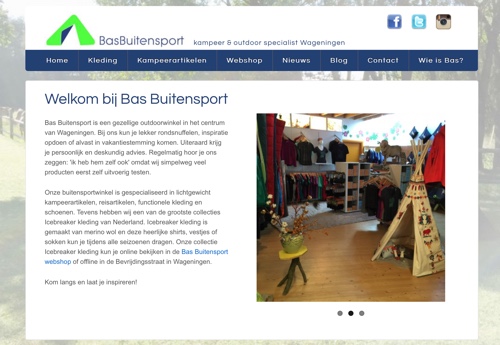 Bas Buitensport is een kampeer- en outdoor specialist in Wageningen, Gelderland. Ze hebben diverse (lichtgewicht) kampeerspullen, wandelschoenen en reisartikelen. De winkel is te vinden in het centrum van Wageningen, vlak bij het busstation.