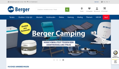 Kampeerwinkel Berger Camping is een online winkel in kampeerartikelen, tenten- en luifels, vrijetijds-artikelen en nog veel meer op recreatiegebied. Hun website is berger-camping.nl