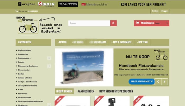 Naast de webwinkel hebben ze ook een fysieke vestiging in Rotterdam. Hier kan je proefrijden op high-end fietsen van onder andere Santos, Avaghon, Frog Bikes , idworx en VSF fietsen. Bike4travel is dealer van zowel Rohloff als Pinion. Bezoek de website Bike4travel.nl.