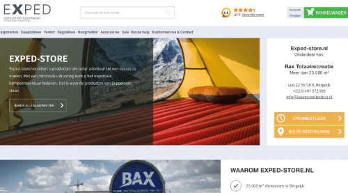 Exped-Store.nl is onderdeel van Bax Totaalrecreatie, een kampeerzaak van meer dan 25.000 m2. Lees meer over Bax Totaalrecreatie