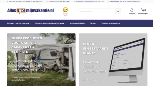 In de webshop vind je meer dan 20.000 producten voor kamperen, caravans en campers. Daarnaast vind je er luifels, fietsendragers, movers en onderhoudsmiddelen. Het grootste deel van het assortiment wordt binnen 24 uur verstuurd. Uiteraard kun je je bestelling ook ophalen in de winkel in Haaksbergen. Bekijk het assortiment en de verschillende productgroepen op www.allesvoormijnvakantie.nl.