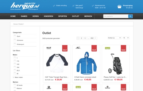 Op de Outlet pagina van Herqua.nl vind je diverse aanbiedingen op sport en wintersportgebied. Als je via de webshop een bestelling doet, dan spaar je automatisch mee met hun spaarsysteem. Meer info over sparen vind je op hun site. Bezoek Herqua.nl