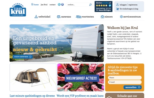 Jan Krul Caravans is een Outdoor- en Kampeerwinkel in Hengelo. Zoals de naam al doet vermoeden zijn ze ook gespecialiseerd in caravans; ze verkopen de merken Caravelair en Sprite Caravans. Tevens kun je er terecht voor tweedehands campers en caravans. Ook kan Jan Krul helpen bj bemiddeling bij de verkoop van je caravan. Op de website vind je een actueel overzicht van camper & caravan occasions. Het servicecenter is er voor onderhoud aan caravan, camper, aanhanger of vouwwagen.