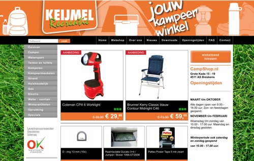Keijmel Recreatie gebruik de website campshop.nl als hun webwinkel. De verzendkosten bij bestellingen onder de 100 euro bedragen op het moment van schrijven 5 euro. Is je bestelbedrag hoger dan honderd euro, dan wordt je bestelling gratis bij je thuisbezorgd.