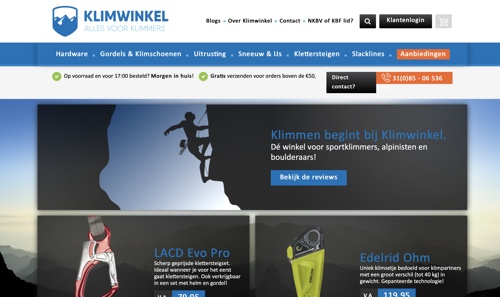 Bergsportzaak Klimwinkel.nl heeft, het zal niet verrassen, alles voor klimmers. Volgens de site zelfs het grootste klimassortiment van de Benelux