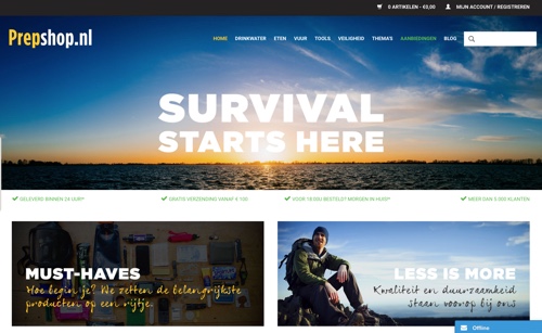 Prepshop.nl is een webwinkel in survival- en prepping-artikelen, net als Prepz.nl. Ze noemen zich een specialist in preppen en zelfredzaamheid. ‘Survival starts here’ is dan ook hun motto.