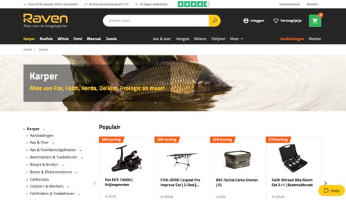 Je vindt er vrijwel alles voor de serieuze hengelsporter. Deze hengelsportwinkel is maar liefst 1.100 m2 groot, en parkeren in de buurt is eenvoudig. Als je in de webwinkel bestelt: bestellingen boven de 50 euro worden gratis verzonden. Bezoek Raven.nl