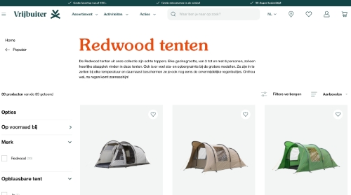 Waar je ook naar op zoek bent, bij Redwood vind je alles wat je nodig hebt. Van tentharing tot 6-persoons opblaasbare glamping tent, en van beanie tot winterwarme parka. Met Redwood maak je jouw vakantie compleet.