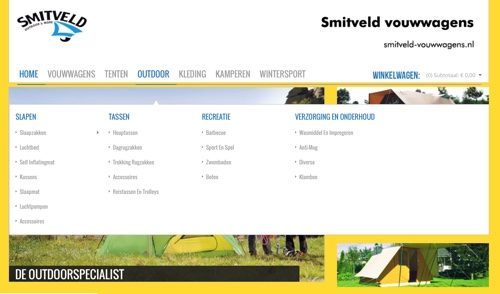 Update: Smitveld stopt met de outdoor en kampeerwinkels, maar zal doorgaan met de productie en verkoop van de Bezoek de website op smitveld-vouwwagens.nl. Alternatieven voor kampeerartikelen zijn Kampeerwereld Hendriks en Bever.nl.