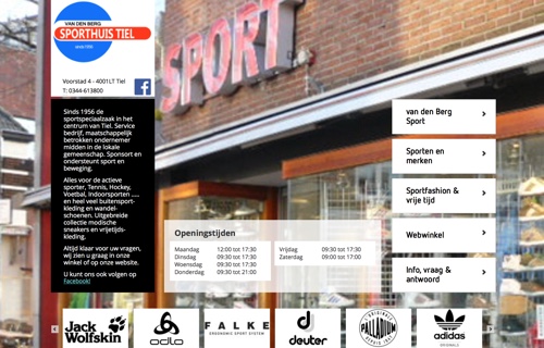 Van den Berg Sporthuis Tiel is meer een sportzaak, maar omdat ze ook outdoor-kleding en wandelschoenen verkopen staan ze toch hier vermeld. De winkel bestaat sinds 1956, en ze helpen je in de winkel met liefde aan goed advies. Bezoek hun website.